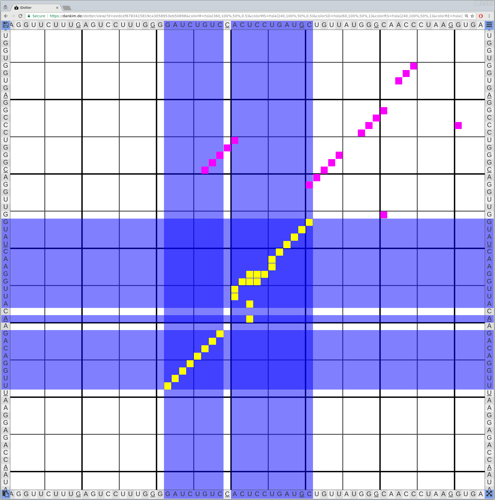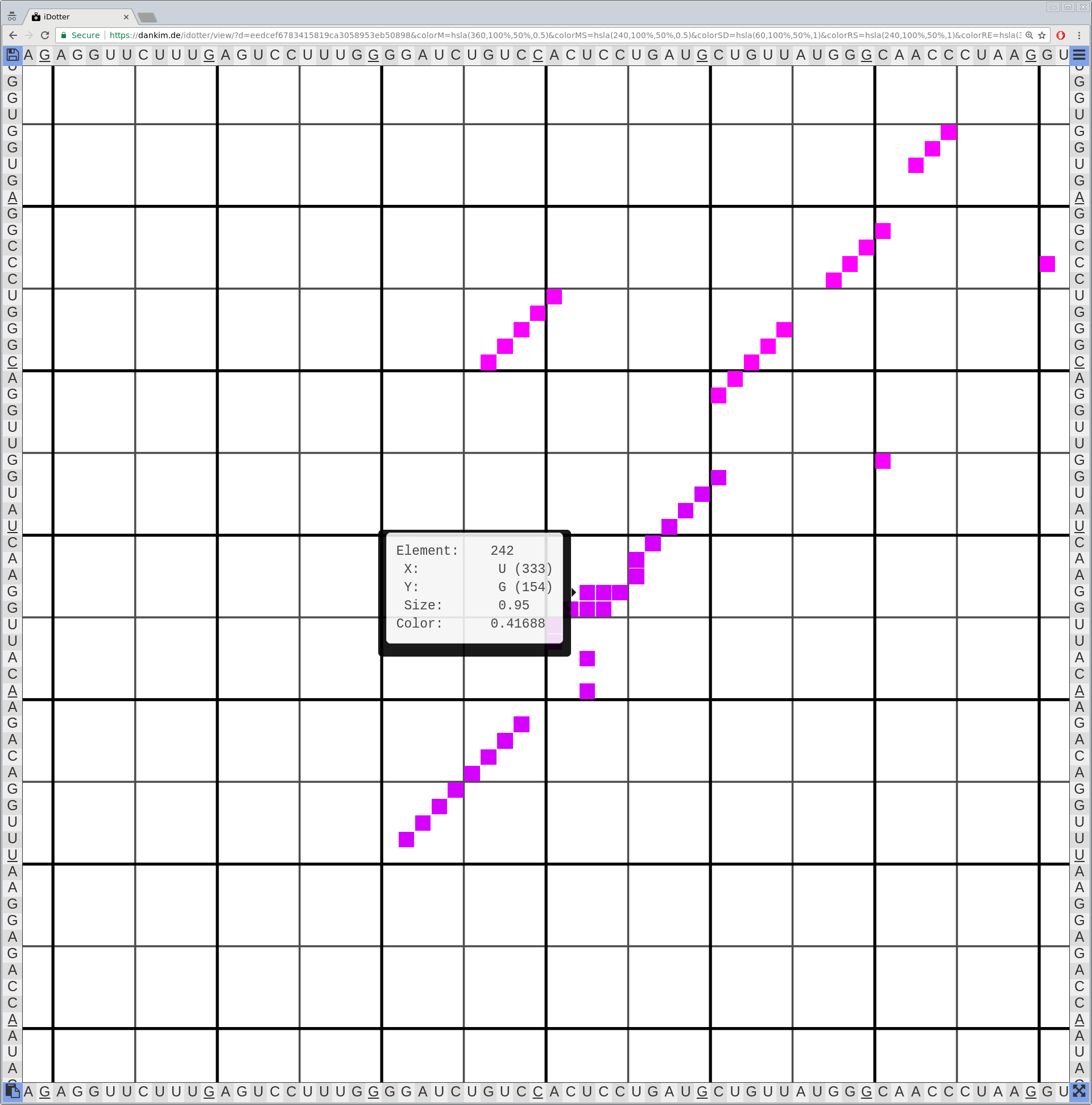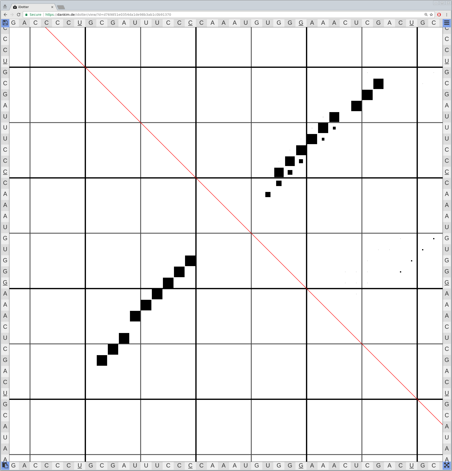Bioinformaticians judge the likelihood of the overall RNA secondary structure based on comparing its base pair probabilities. These probabilities can be calculated by various tools and are frequently displayed using dot plots for further analysis. However, most tools produce only static dot plot images which restricts possible interactions to the capabilities of the respective viewers (mostly PostScript-viewers). Moreover, this approach does not scale well with larger RNAs since most PostScript viewers are not designed to show a huge number of elements and have only legacy support for PostScript. Therefore, we developed iDotter, an interactive tool for analyzing RNA secondary structures. iDotter overcomes the previously described limitations providing multiple interaction mech- anisms facilitating the interactive analysis of the displayed data. According to the biologists and bioinformaticians that regularly use out interactive dot plot viewer, iDotter is superior to all previous approaches with respect to facilitating dot plot based analysis of RNA secondary structures.